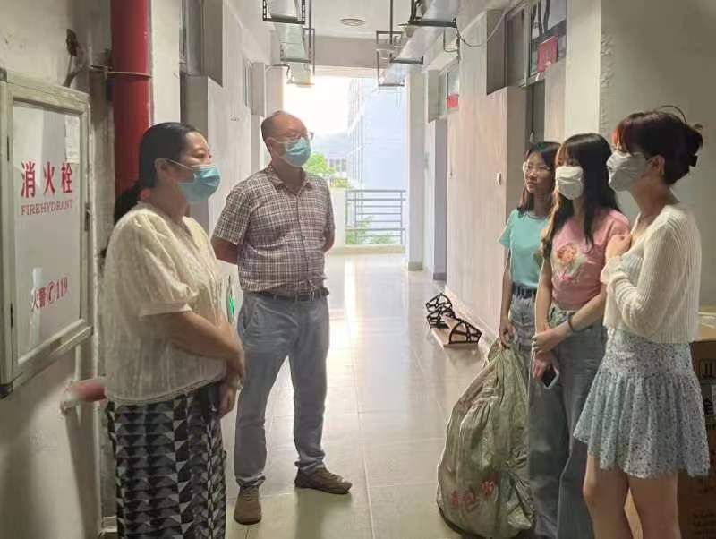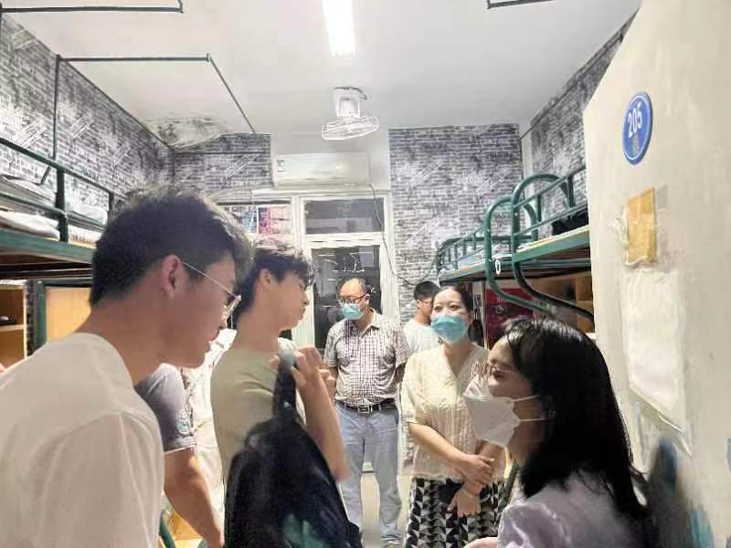 走访过程中,老师与同学们进行了亲切交流,详细了解了同学们在疫情期间的学习情况和生活需求,叮嘱同学们要严格遵守学校疫情防控各项管理规定,做好个人防护工作,保持良好的宿舍卫生,共同维护校园安全稳定。陈达颖副书记(主持工作)指出,要把学生的事放在第一位,将学生的方方面面做到胸有成竹,特别是对于刚入学不久的新生群体,还在适应时期,要给予更为深入的关心和帮助,助力学生更快地适应校园生活。吴思锋副书记表示,新形势下的学生工作对我院教工队伍也是一种考验,要及时深入学生当中去,真切了解学生的具体情况,做好具体工作规划,更好的帮助我们的学生成长成才。