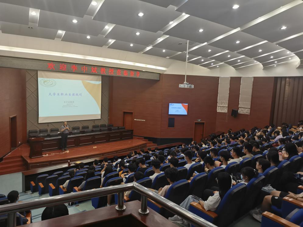 2022年9月20日下午,我院工商管理系邀请福建农林大学教授、博士生导师、福建省特色智库生态文明研究中心副主任李中斌老师,在马尾学术报告厅为全系新生开展“大学生职业生涯规划”讲座。讲座中,李教授以问题开场,通过“你了解你的专业吗?”“你是否做过职业生涯规划”等问题,引发同学们的思考。随后,李教授从自身感悟出发,与同学们畅谈了孔子的“因材施教”,人才的精准赋能,从“钱学森之问”到“任正非之问”,关于科技人才与创新人才的培养等问题。最后,李教授通过一个大学生职业生涯规划的典型案例,手把手地教同学们该如何做好自身职业生涯规划。同时勉励同学们:唯有喜好读书和终身学习,才能成就职业发展。