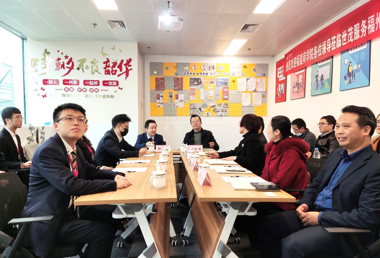 座谈会上,刘剑津书记对世茂服务集团对学生的培养和付出表示感谢。他从校企合作角度介绍了学校概况和发展规划,分析了福建商学院的人才培养与学科发展方向。我校结合企业需求、行业标准和人才培养定位,找准校企合作的切入点和着力点,共建产业学院,拓展合作空间,实现优势互补、共赢发展。