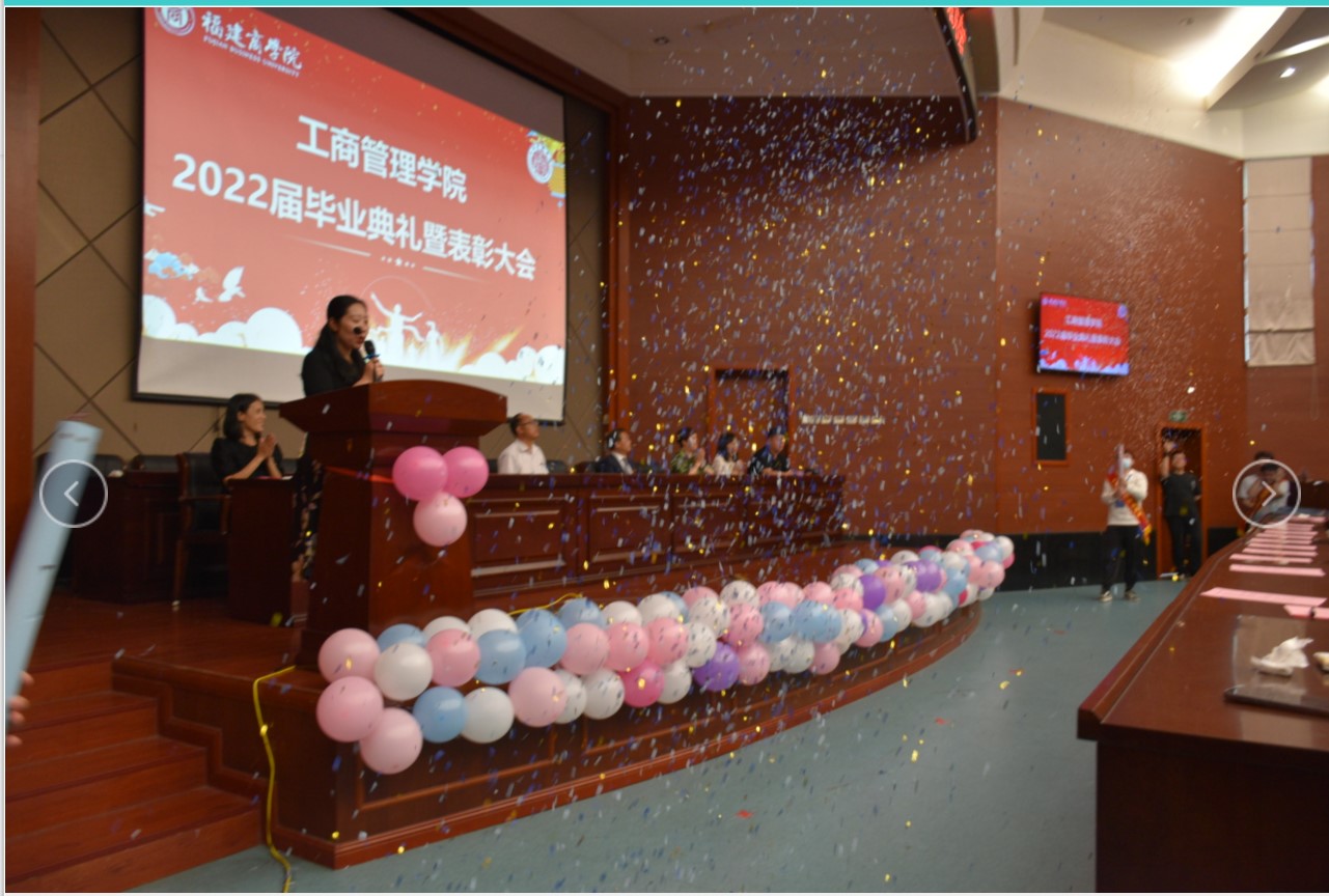 6月13日下午,福建商学院国产又粗又黄又爽又硬2022届毕业典礼在马尾校区学术报告厅隆重举行。本次毕业典礼由办公室主任林娈主持,我院党委副书记陈达颖、吴思锋、副院长纪孝清、严谨、团委书记韩玉娟以及教师代表、辅导员代表、毕业生代表等近200人参加了本次活动。