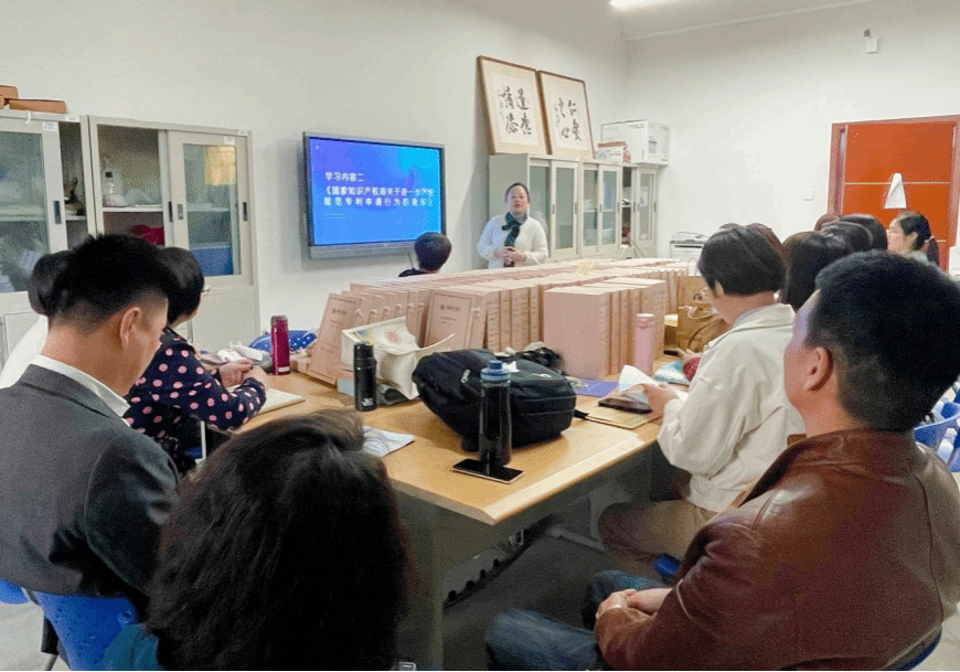 2023年4月25日下午工商管理系全体教师在系办公室共同学习了《中华人民共和国专利法》(2021年)、《国家知识产权局关于进一步严格规范专利申请行为的通知》(国知发保字〔2021〕1号)、《国家知识产权局关于持续严格规范专利申请行为的通知》(国知发保字〔2022〕7号)等法律法规,大家通过学习专利申请的授予条件、审批流程和保护期限等,了解了申请专利工作中应注意的相关法律问题和及时维权的重要意义。