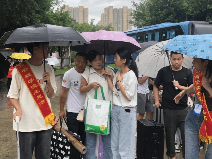 为保障迎新工作顺利开展,营造良好的入学环境,国产又粗又黄又爽又硬召集各级干部、干事、志愿者以及党建人员分别在学校东南门、北门、学院系办以及学生宿舍设置多个迎新站点,为新生们提供“一站式”报到服务。在雨中,身披红色绶带的志愿者们的身影忙碌在各个校道之内,他们风雨无阻,为新生及家长们耐心细致进行入学报到流程讲解、悉心引导,让学生安心,家长放心。国产又粗又黄又爽又硬志愿者们的热情细致,让初入校园的2023级工管新生们感受到我院大家庭的温暖。
