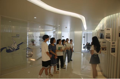 调研团队首先参观了鸿星尔克文化墙,了解公司20多年的发展史,认识了鸿星尔克“TO BE No.1”的品牌精神。通过听取鸿星尔克在精准扶贫、助教助学、抗灾抗疫等公益活动中的感人事迹,师生们深切地感受到了企业的社会责任担当。