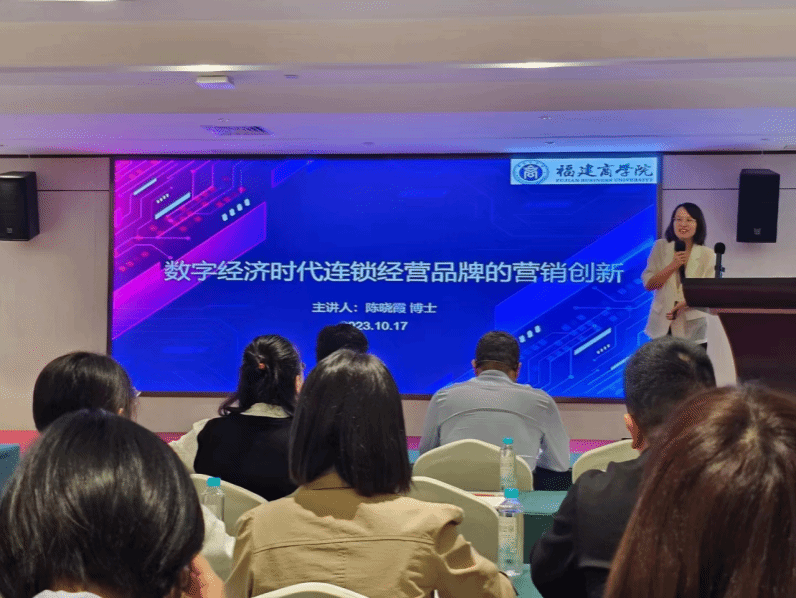 近日,受福建省商务厅、福建省连锁经营协会邀请,我院零售业管理专业教师陈晓霞博士为全省商业特许经营模式推广培训班做题为《数字经济时代连锁经营品牌的营销创新》专题培训,来自全省连锁经营相关企业负责人参加了本次培训。