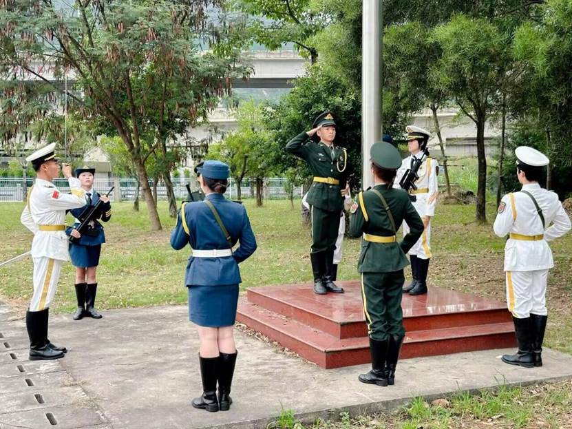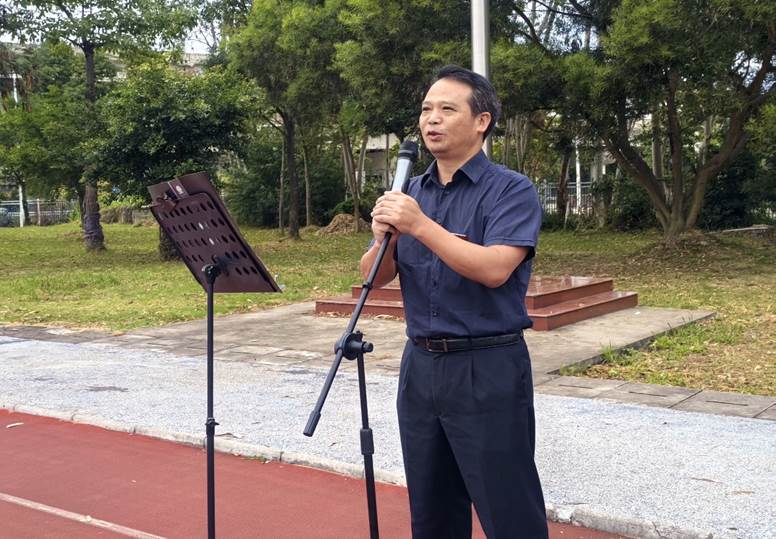 秋风送爽,晨曦微露。在全体师生的注目礼下,国旗护卫队迈着铿锵的步伐,护送着五星红旗正步走向升旗台,全体师生面向国旗肃立致礼。伴随着激昂的《义勇军进行曲》,升旗手展臂一挥,五星红旗在熠熠晨光中冉冉升起,迎风飘扬。