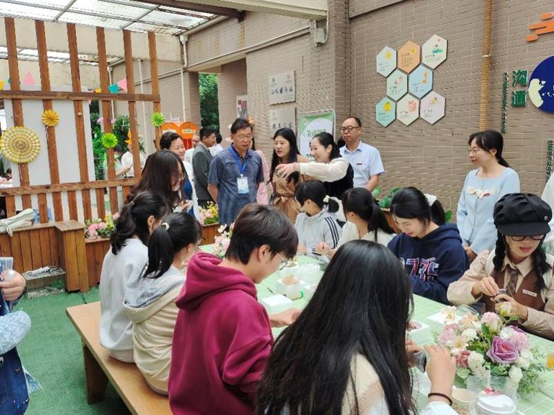 现场活动积极健康向上,师生共话成长经历,引导大学生健康学习生活。在“体验生态瓶乐趣,向阳而生”活动中,学生党员与新生一起动手制作生态瓶,将心理特征展示于微景观生态瓶,亲近绿色生态,向阳而生,让内心得到宁静与治愈。在“园艺健心,共话成长”活动中,学生通过分享种植瓜果蔬菜的经历,呵护植物生命成长的过程,从而感受到拥抱自然,健康成长的乐趣。在“让维C爆炸,解锁多巴胺”活动中,新生通过捶打柠檬,自制柠檬茶,释放更过的多巴胺,探索食物与压力、情绪的相互关系,学会压力的自我调控,学会与情绪相处。在“填色解压,忘却烦恼”活动中,新生运用颜色搭配,表达心理状态,个体可以全身心投入色彩中,提高专注力,减轻精神压力。