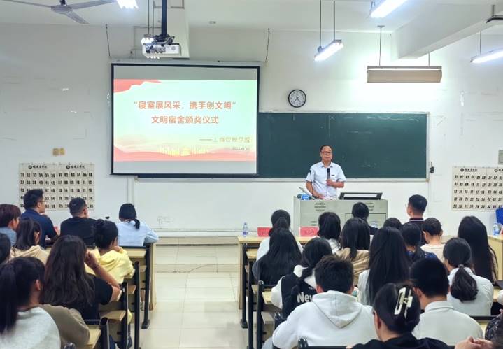 颁奖仪式上,吴思锋副书记向获奖宿舍表示祝贺,并鼓励大家再接再厉,希望获奖的宿舍能够继续发挥好模范带头作用,同时也希望全体同学能够以获奖同学为榜样,向他们学习,创建文明、和谐和美丽的寝室环境。