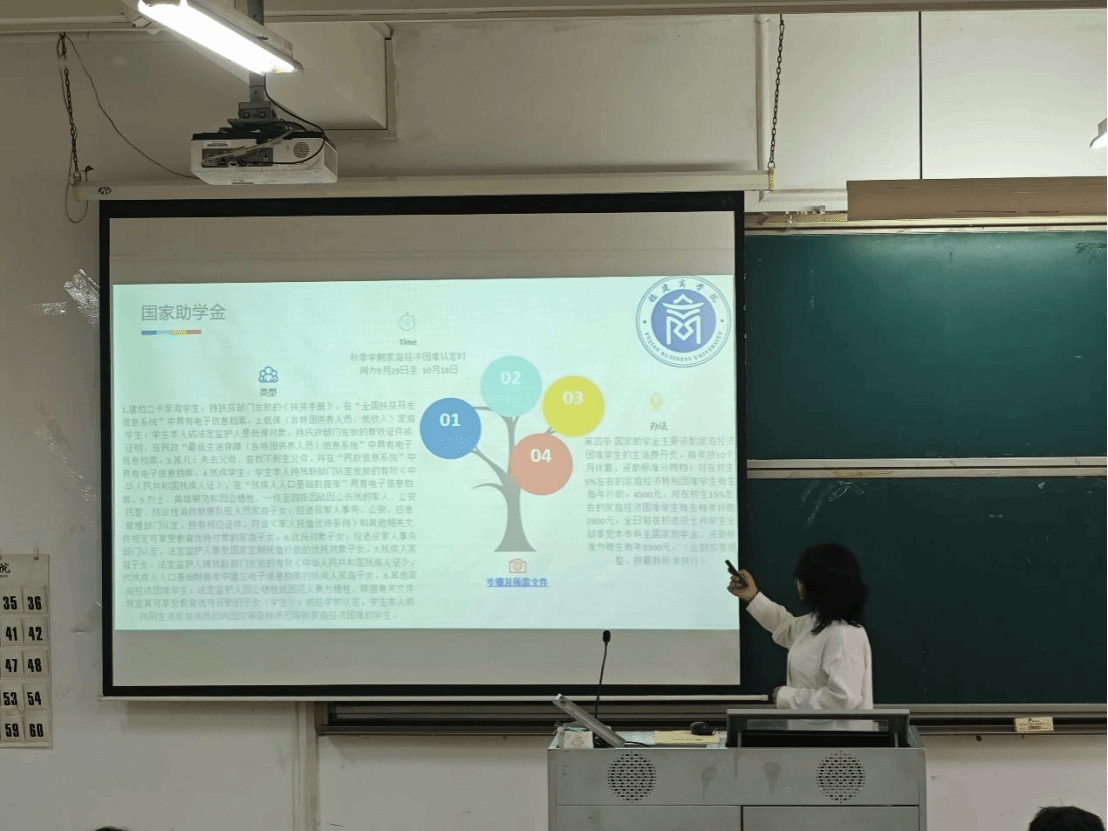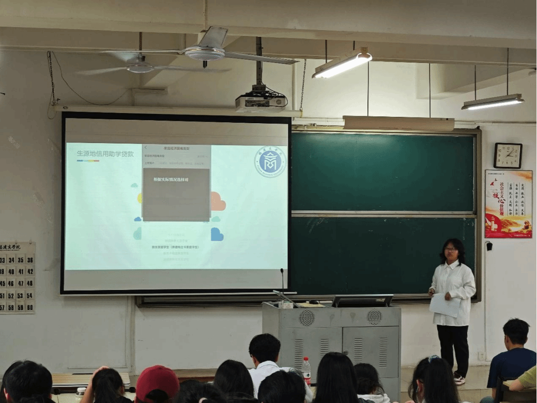 讲座伊始,资助大使张振渊同学对国家资助政策体系进行了整体介绍,并详细解读了包括国家奖学金、国家励志奖学金、国家助学金、生源地信用助学贷款、勤工俭学、临时困难补助在内的各项资助政策的申请条件、评审程序、发放标准及注意事项,确保学生对各项政策有清晰、准确的理解。