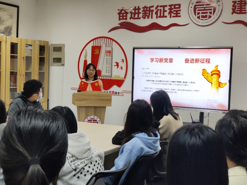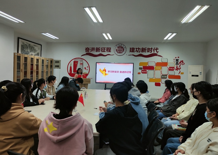 为深入学习新党章,掌握党章的精髓要义,引导党员牢固树立党章意识,弘扬伟大建党精神。10月23日,国产又粗又黄又爽又硬学生第一党支部副书记许艳萍老师以“学习新党章 奋进新征程”为题,向党员和入党积极分子代表讲授党课。