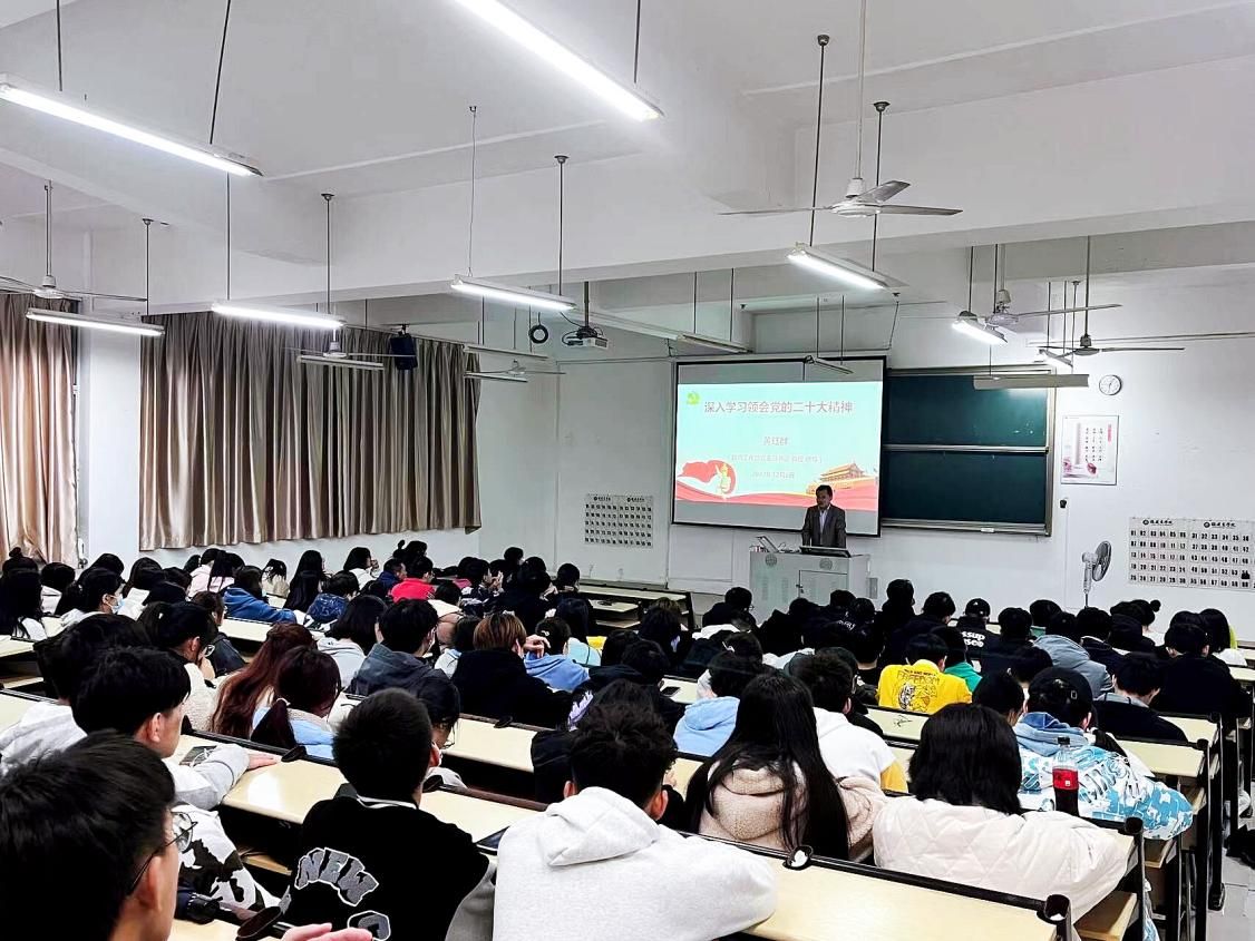 黄珏群教授以《理解和把握党的二十大报告的逻辑结构和精神内涵》为题,系统讲解了党的二十大报告主要内容和核心要义,他说,党的二十大是在我国迈上全面建设社会主义现代化国家新征程、向第二个百年奋斗目标进军的关键时刻召开的一次十分重要的大会,是迈向第二个百年奋斗征程的动员令。“两个确立”是党在新时代取得的重大政治成果,是推动党和国家事业取得历史性成就、发生历史性变革的决定性因素。核心就是力量,旗帜引领方向。学习贯彻党的二十大精神,就要深刻领悟“两个确立”的决定性意义,切实把“两个确立”的政治成果转化为坚决做到“两个维护”的政治自觉。当代中国青年生逢其时,施展才干的舞台无比广阔,实现梦想的前景无比光明。作为新时代的青年大学生,希望大家要坚定不移听党话、跟党走,怀抱梦想又脚踏实地,敢想敢为又善作善成,立志做有理想、敢担当、能吃苦、肯奋斗的新时代好青年,让青春在全面建设社会主义现代化国家的火热实践中绽放绚丽之花。
