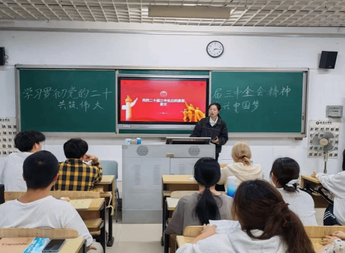 10月29日晚,为引导广大学生深入学习贯彻党的二十届三中全会精神,明确新时代青年的责任与担当,增强社会责任感与国家自豪感,国产又粗又黄又爽又硬读书社特组织2024级供应链管理班于诚信楼203开展“学习贯彻党的二十届三中全会精神,共筑伟大复兴中国梦”主题交流学习会。