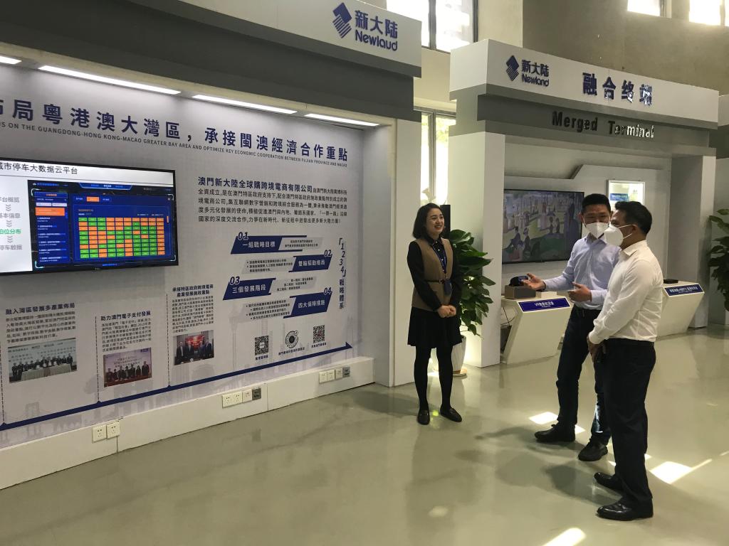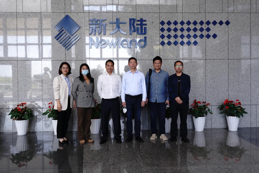 在新大陆科技集团,周洪耀副总经理带领到访的校方代表们先参观了新大陆公司展馆。在解说员的介绍下,新大陆集团的历史发展进程徐徐展示。学院老师们实地察看数字技术在移动支付、社会治理、教育、农业等不同行业的应用场景,详细了解企业产品研发情况。
