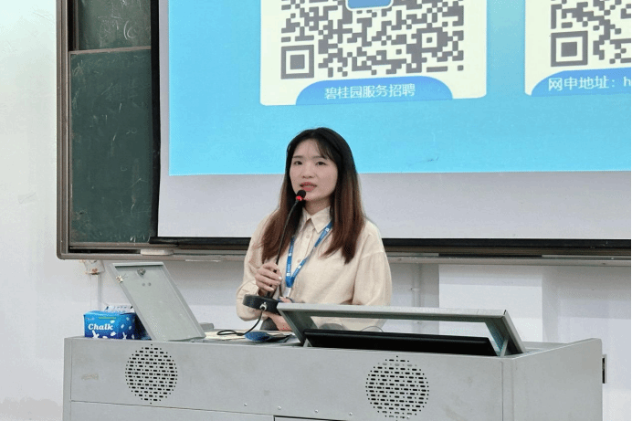 碧桂园宣讲负责人分享了其在物业管理行业的丰富经验和成功案例、碧桂园服务的背景和发展历程,以及公司秉承的“服务成就美好生活”的品牌使命。紧接着,负责人详细介绍了应届毕业生的培养计划,期望通过前置学习、入职集训、轮岗学习、挂职锻炼、导师带教等多种培养模式,实现员工多方位成长和能力提升,使毕业生在短期内迅速成为具备行业竞争力的复合型人才。