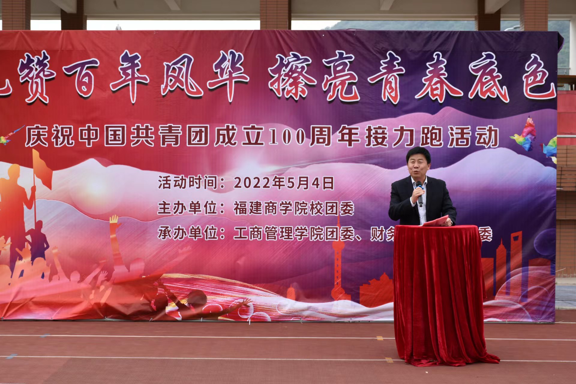 活动中,校团委副书记(主持工作)郑琼和兼职副书记谢张琳分别从校领导手中接过熊熊燃起的火炬,带领各二级学院团委书记奔跑在操场上。随后,各学院团员代表按照3人一组的顺序环校园开展火炬接力跑。同时,现场的学生观众还参加了青年节知识竞赛、爱国歌曲演唱、听歌识曲、抽奖等互动活动。在合影环节,青年学生摆出“100”的造型,庆祝中国共青团迎建团100周年。