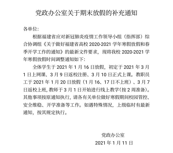 关于2020-2021学年第二学期 开学工作安排的最新通知