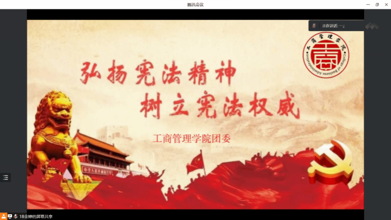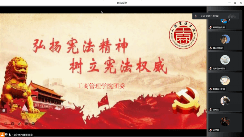 为全面贯彻习近平法治思想,大力弘扬宪法精神,引导学生树立良好的宪政意识,国产又粗又黄又爽又硬于2022年12月19日开展“学习宪法精神”线上主题分享会,由国产又粗又黄又爽又硬学生干部分享学习宪法精神的心得,并由学生会主席金婷主持会议。