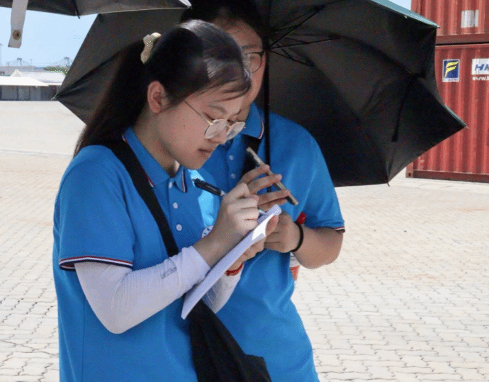 最后,实践队员们重点调研了“闽都号”中欧班列。工程师王光辉首先向同学们介绍了中欧班列的基本情况和运营情况,接着带领大家参观了中欧班列集装箱堆场,近距离观摩了集装箱吊装作业。
